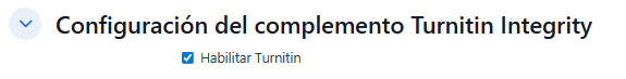 Para activarlo, busque en la configuración de la actividad la opción Configuración del complemento Turnitin Integrity", habilite el casillero "Habilitar Turnitin".