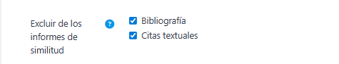 Los casilleros que seleccione permitirán que no se muestren como coincidencia en el informe de similitud. Es decir que se pueden omitir automáticamente similitudes con: