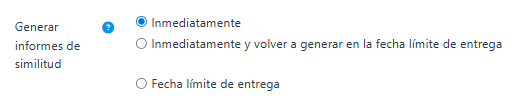 Nos permite configurar tres opciones que determinan el momento en el que se realiza el informe de originalidad: