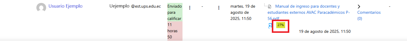 A continuación, visualizaremos un ejemplo del porcentaje de similitud en la actividad Tarea: