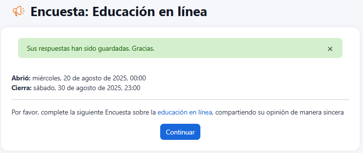 - Una vez enviada, aparecerá un mensaje de confirmación indicando que Sus respuestas han sido guardadas.