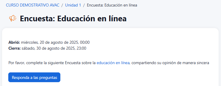 - Ingrese al curso donde se encuentra la encuesta.