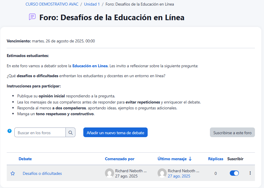 - Busque la actividad Foro (el nombre lo define el docente).