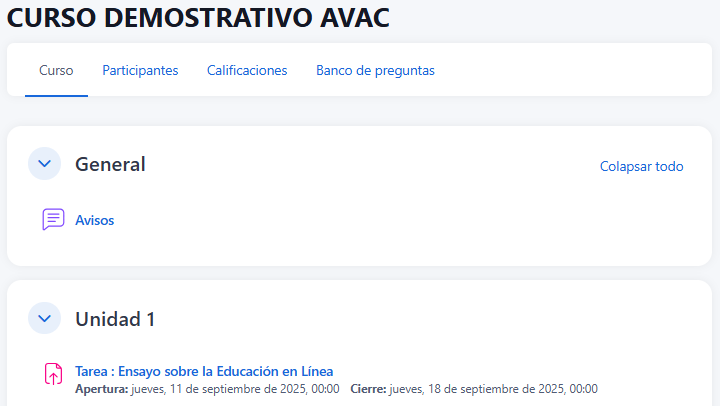 - Ingrese al curso correspondiente en la plataforma AVAC.