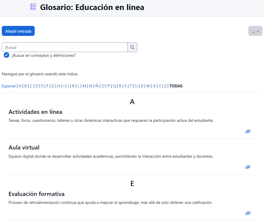 - Ingrese a su curso y localice la actividad Glosario.