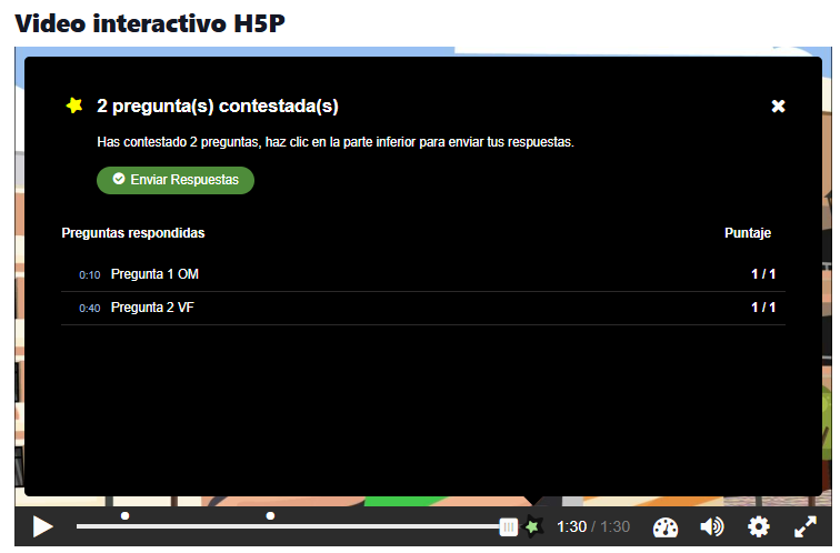 - Al finalizar el video, el sistema le mostrará las preguntas contestadas y el puntaje.