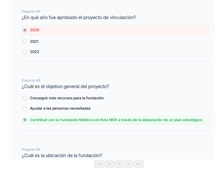 En la siguiente página le mostrará las respuestas incorrectas y correctas.