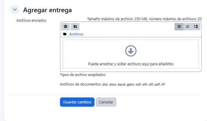 Conforme la configuración que realice el docente, la entrega será un texto en línea o la subida de uno o varios archivos.