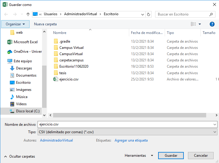 - Permite importar grupos creados en una hoja de cálculo de Excel que fueron guardados en formato CSV y con codificación UTF-8.
