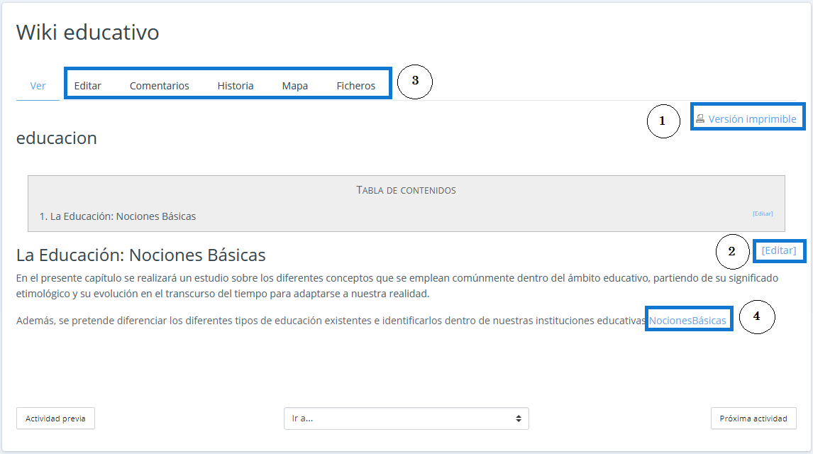 - Al pulsar en el enlace (1) Versión imprimible, se despliega una ventana emergente indicando el contenido de la wiki como página web.
